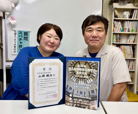 この度、当協会の運営委員である山瀬健治氏の研究発表が、10月11日・12日に開催されました「第12回 成人発達障害支援学会」におきまして、最優秀演題に選出されましたことをご報告いたします。 この学会では、大学病院の医師をはじめとする多くの専門職や研究者から優れた演題が発表されました。その中で、当事者の視点に基づいた研究が最も優れた発表として評価されたことは、大変意義深い快挙です。 今回の受賞は、当事者の声やニーズが専門分野においても重要視されていることの証であり、私ども協会にとっても大きな喜びです。